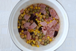 ベーコンから油が出てきたらミックスビーンズとコーンを加えて軽く炒め、(A)を加え沸騰後弱火で5分煮る。