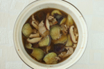 だし汁を加え蓋をし、全体に火が通るまで5分ほど煮る。