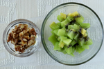 キウイは皮をむき、1㎝角に切る。くるみは手で粗く砕く。