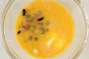 ボウルに卵を割りほぐし、(A)を加え混ぜ合わせ卵液をつくる。