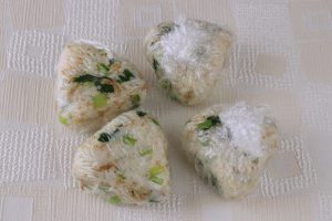 ボウルにごはんと②を入れ良く混ぜ、4等分にしてお好みの形に握る。