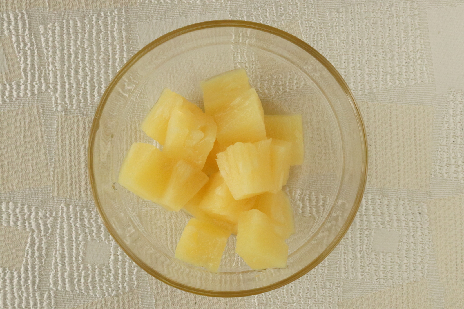 ボウルで水切りヨーグルト、ココナッツオイル、②のパインを混ぜ合わせる。