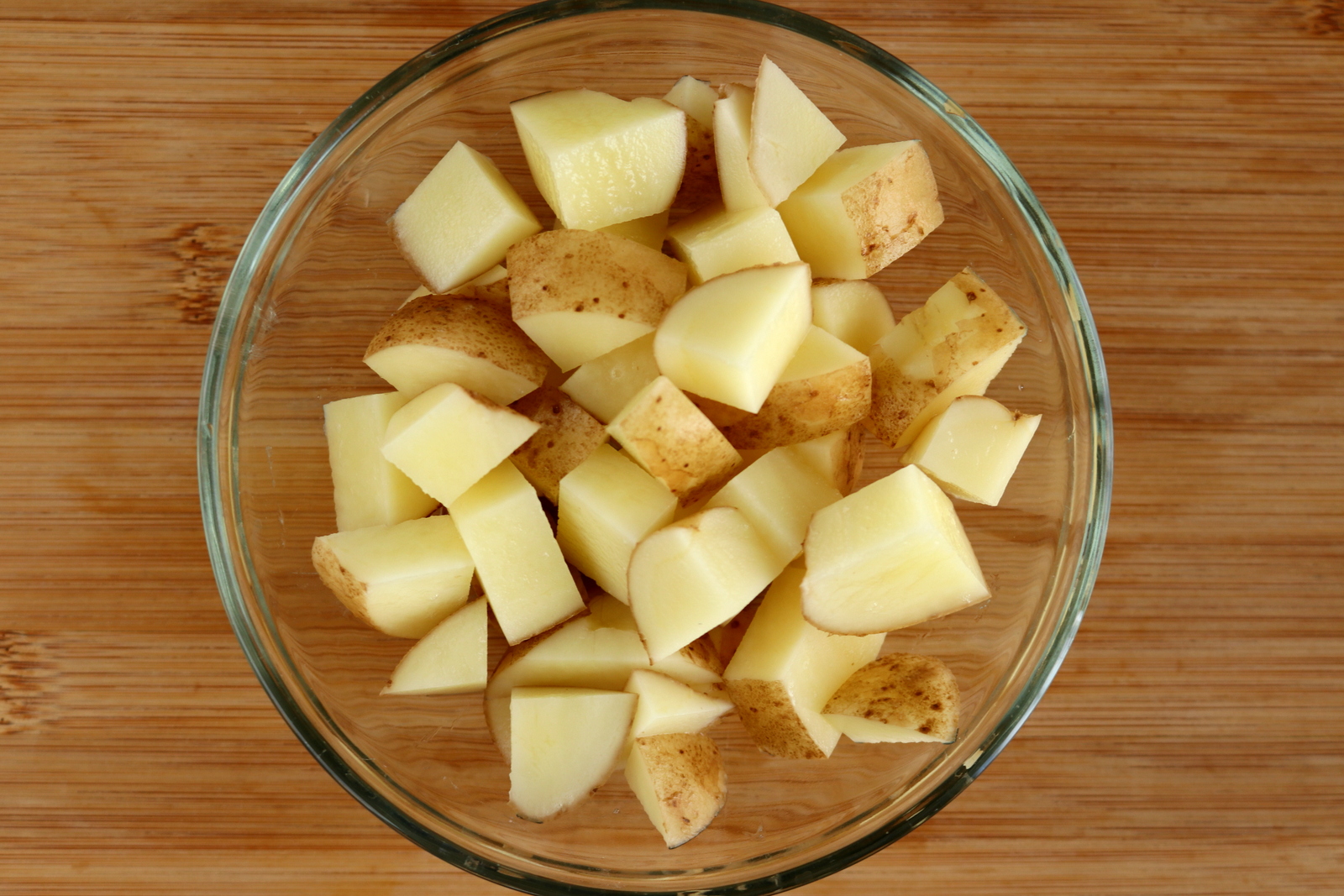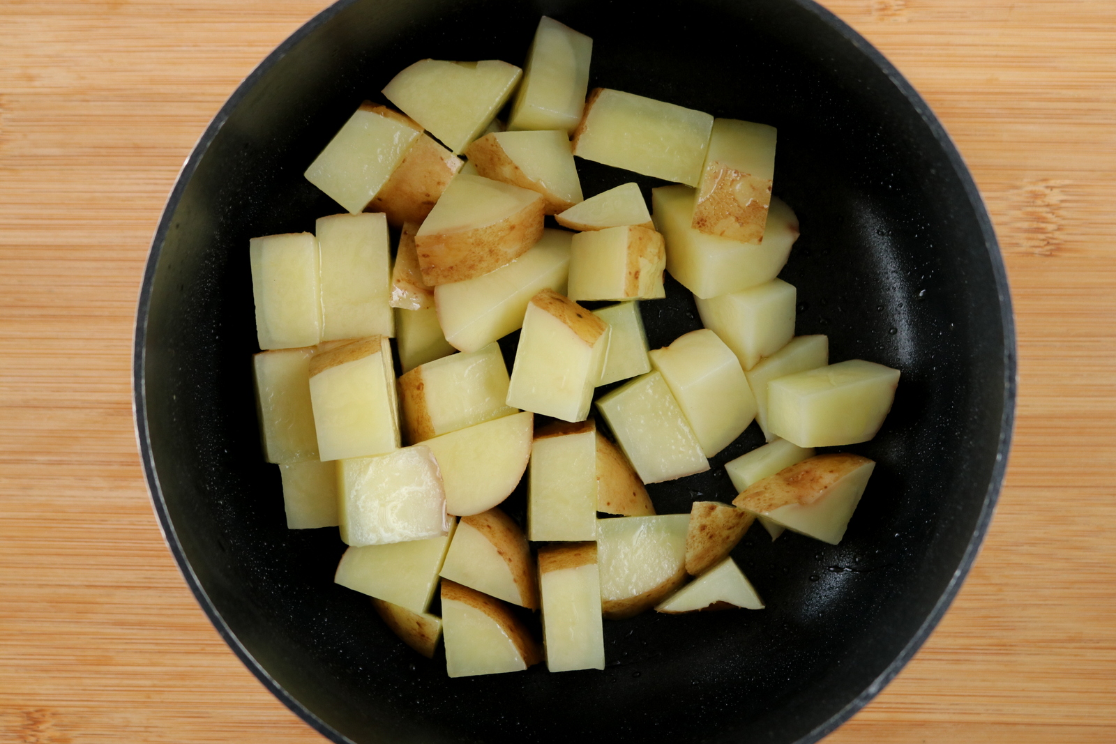 じゃがいもはよく洗い皮ごと1.5㎝角に切る。
