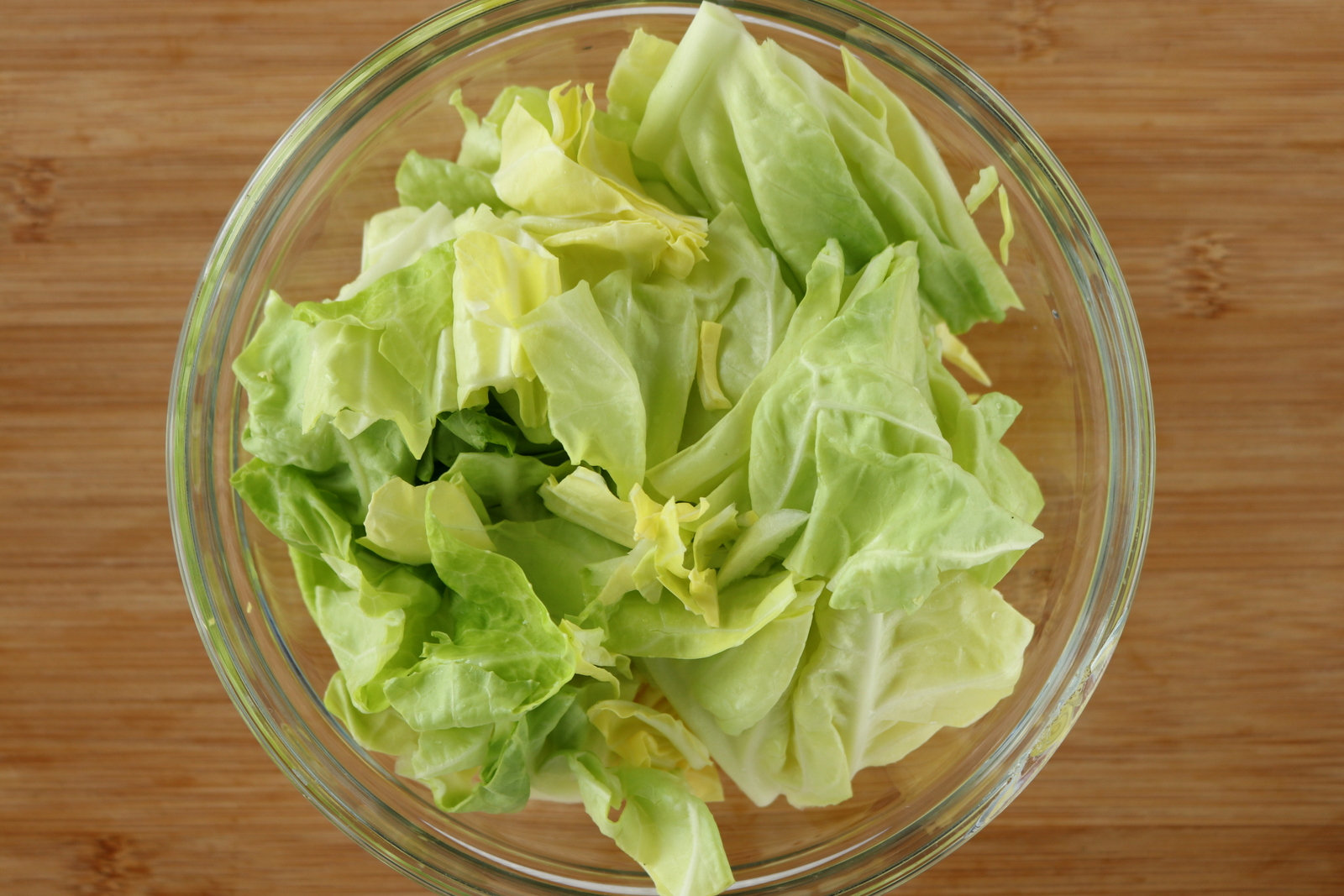 キャベツは食べやすい大きさにざく切りにし、耐熱ボウルに入れる。
