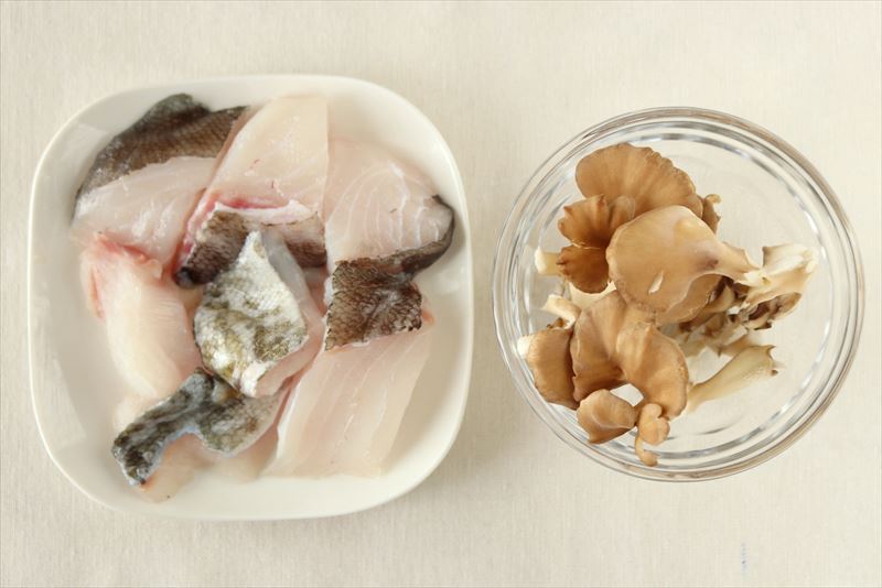 真鱈は3、4等分の食べやすい大きさに切り塩(分量外)を少々軽くふる。