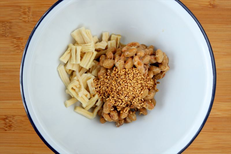 - ・納豆はお好みで粒が大きいものにすると噛む回数が自然と増えます。