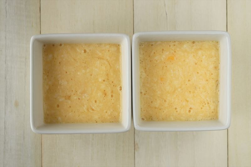 長いもはすりおろし卵と混ぜ合わせ耐熱容器に流しいれる。