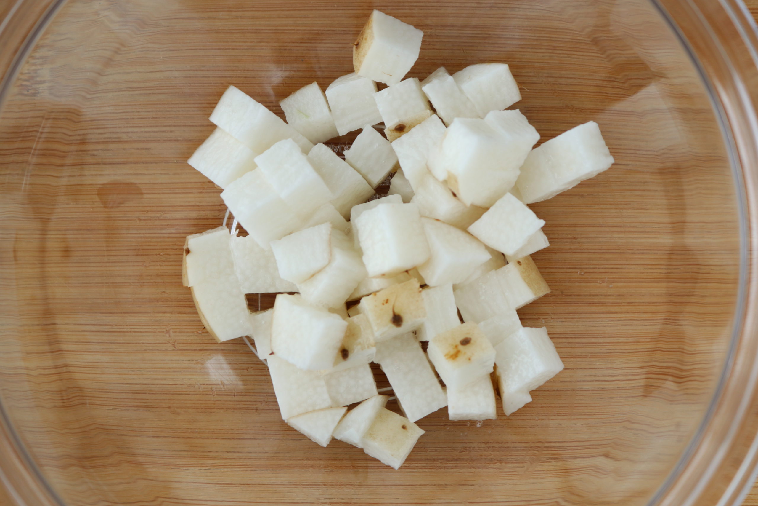 長いもはひげを焼き皮ごと1㎝角に切る。