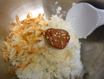 1: | ご飯に桜えび、梅干し、白ごまを加える。 | |
