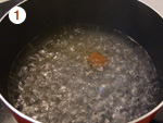 1: | 鍋に水を入れ火にかける。沸騰したらコンソメスープの素を入れて溶かす。 | |
