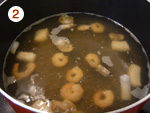 2: | シーフードミックスを凍ったまま入れ、弱火で2~3分煮る。 | |