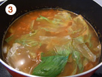 3: | トマトを加え、煮立ったらレタスを加える。 | |