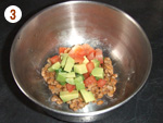 1: | アボカドは種と皮を除いて1cmの角切りにする。トマトは粗みじん切りにする。 | |