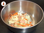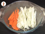 2: | 耐熱容器にキャベツとにんじんを入れて塩少々をふり、ラップをして電子レンジ(500W)で約1分間加熱する。加熱後、ラップを外して冷ましておく。 | |
