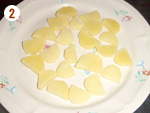 2: | さつまいもを水気を拭かずに平らな耐熱容器に並べてラップをかけ、電子レンジ(600W)で2分ほど加熱する。熱いうちにつぶして冷ましておく。 | |