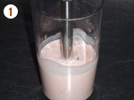 ハンドブレンダーや ミキサーで材料がなめらかになるまで攪拌してグラスに注ぐ。