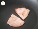 1: | ベーコンは半分に切り、フライパンで焼く。トマトは5mm幅の輪切りにする。 | ||