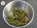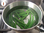 1: | 凍ったままのいんげんを鍋でゆでて、2~3等分に切る。[1] | |