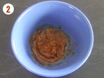 2: | ボールにピーナッツバター、水小さじ1、しょうゆ、はちみつを入れてよく混ぜておく。[2] | |