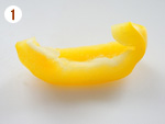 1: | パプリカの苦みが気になる場合は、内がわについている白い部分を丁寧に取り除く。 | |