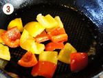 3: | フライパンにオリーブ油を入れ、パプリカ→レモン汁→塩糀の順に炒める。 |
