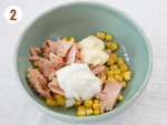 2: | [A]をすべて混ぜ合わせ、[1]のロールパンにはさむ。 | |