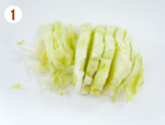 1: | レタスは1cm幅の細切りにする。 | |