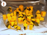 1: | かぼちゃは1㎝角に切り、トースターで4~5分焼く。[1] | |