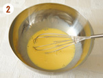2: | [1]の間に、ボウルに牛乳(または豆乳)とたまごを入れよく混ぜておく。[2] | |