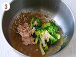 1: | ブロッコリーは小房に分けて塩ゆでをする。ツナの水気を軽く切る。 | |