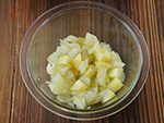 1: | 玉ねぎとじゃが芋は1㎝の角切りにして耐熱容器に入れ、塩をひとつまみ加えてふんわりとラップをかけて600wのレンジで3分加熱する。 | |