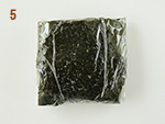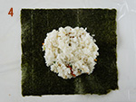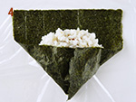 4: | 残りのごはんをかぶせるようにのせ、海苔の四隅を折りたたむ。 | |