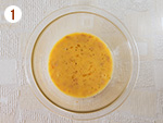 2: | 耐熱ボウルに①の半量を入れ、電子レンジ600wで1分30秒加熱する。真ん中が生っぽいようであれば10秒ずつ様子を見ながら加熱する。 | |
