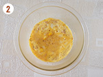 4: | 残り半分の生地も同様に電子レンジで加熱し、オムレツを作る。 |