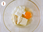 1: | ボウルに(A)を混ぜ合わせ、粉を半量ずつダマにならないように混ぜ合わせる。 | |