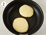2: | テフロン加工のフライパンにサラダ油を熱し、①を4等分にして弱火~中火で両面焼く。 | |