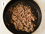 1: | フライパンにごま油をひき中火にかけ、生姜を入れ、香りがたったらひき肉を入れ炒める。 | |
