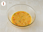 1: | ボウルに卵を溶きほぐし、(A)を混ぜ合わせる。 | |