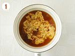 1: | (A)を合わせて中火にかけ、沸騰したら弱火にして溶きほぐした卵を回し入れる。 | |