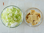 白菜は1cmの細切りにする。油揚げは2㎝角に切る。