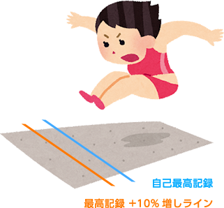よく言われるのが、立ち幅跳びをしてマックスがあったとしたらその10%先の110%ぐらいに線を引くとすごく良い記録が出ると言われます。