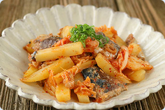さばじゃがキムチ炒め 「さばの味噌煮缶を使った簡単レシピ」