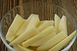 さばの身は骨に沿って縦半分に割り、じゃがいもは皮をむいて1㎝角の棒状に切る。