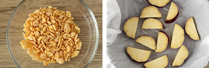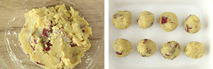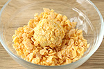 8等分して丸め、冷めたらコーンフレークを軽く押し付けるようにしながら表面にまぶす。