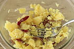 さつまいもが柔らかくなったことを確認してボウルにあけ、熱いうちにフォークなどで粗くつぶす。
