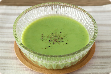 じゃがいもをスープに使用することで、自然なとろみ付けにもなり、優しい口当たりに仕上がります。