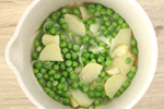 じゃがいもが柔らかくなったことを確認し、グリンピースを加え混ぜ、蓋をして弱火で2~3分加熱する。