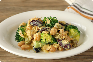 軽く水気を切ったツナとミックスビーンズを加え混ぜ合わせる。