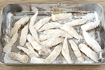 1)をザルにあけてキッチンペーパーで水気をとり、片栗粉をまぶす。