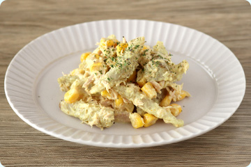 ボウルに(A)と水気を切ったツナ、コーンを加え混ぜ合わせる。